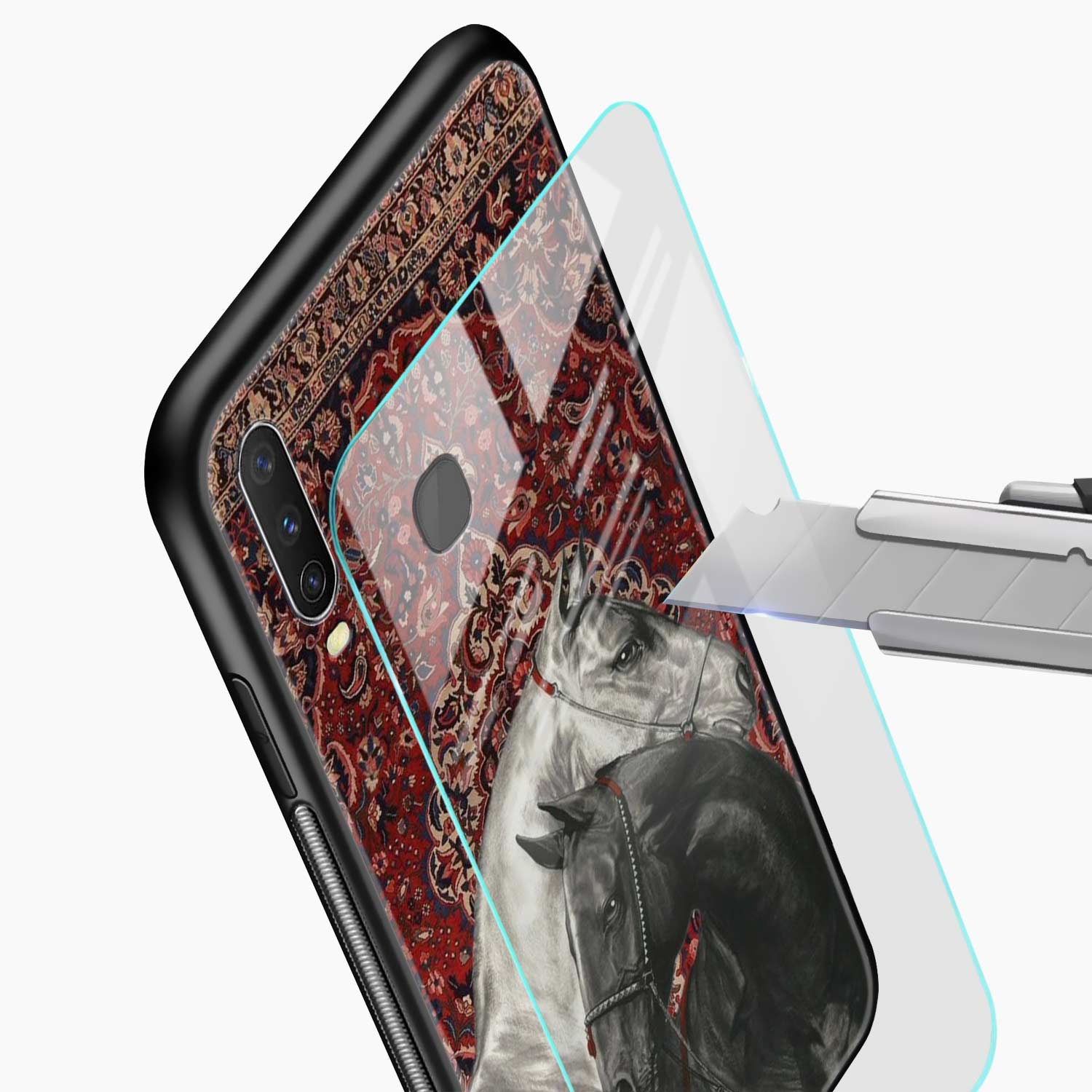 Black And White Horse Vivo Y12 Back Cover