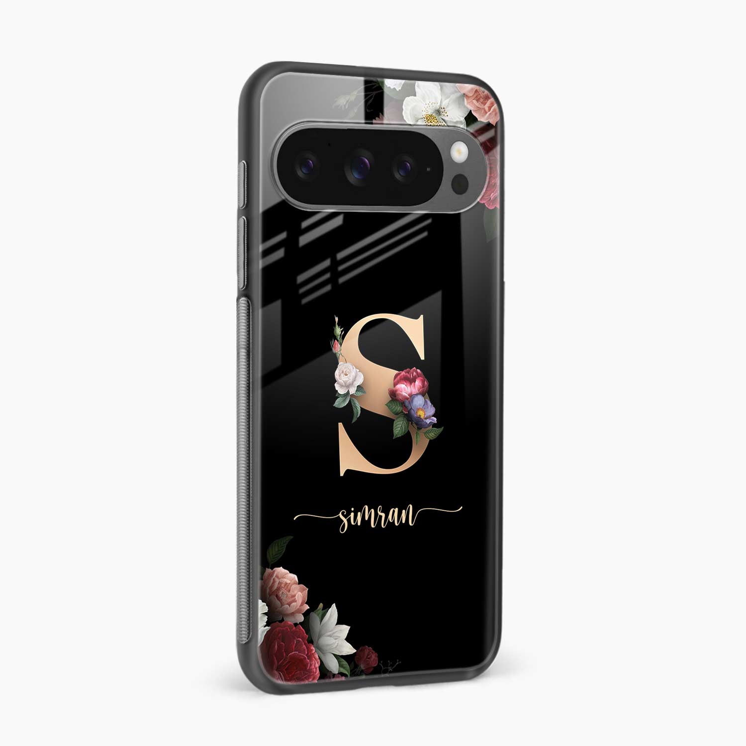 Black Floral Name Personalised Google Pixel 10 Pro Xl Back Cover