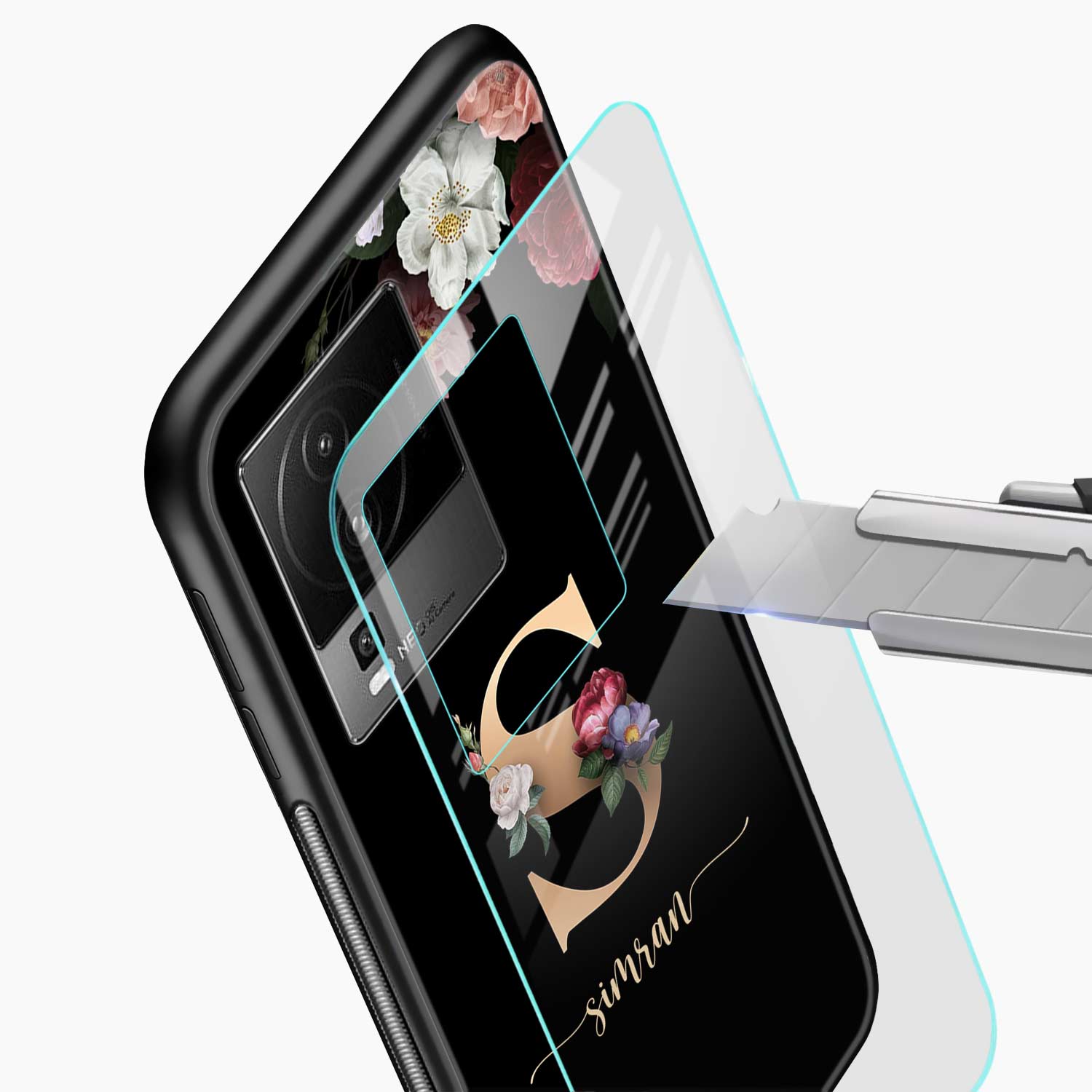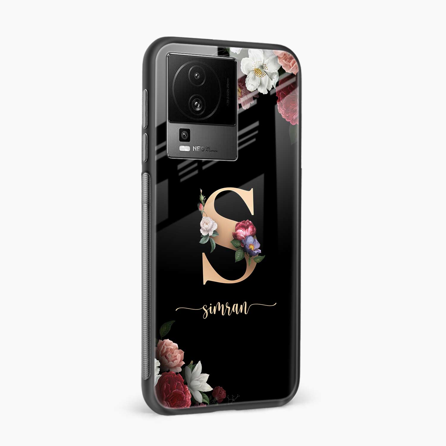 Black Floral Name Personalised Iqoo Neo 7 Pro 5G Back Cover