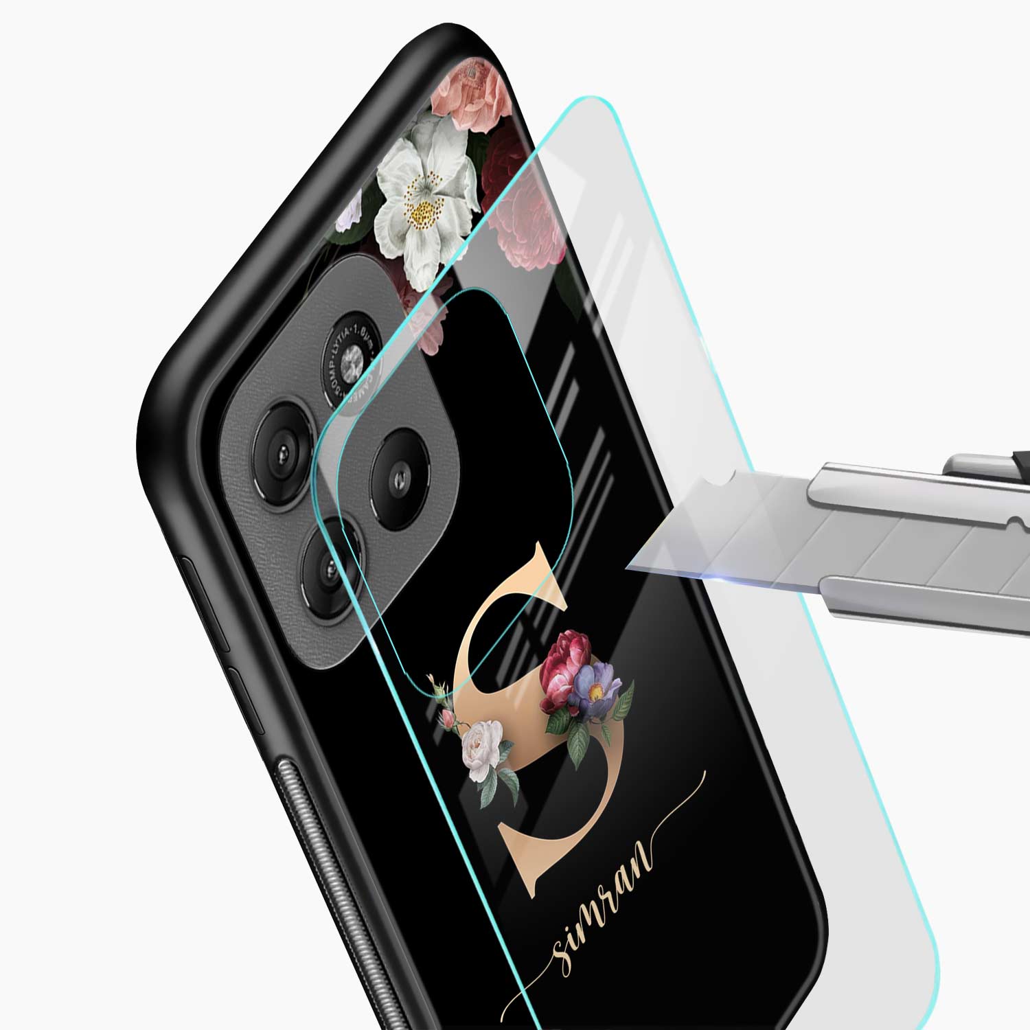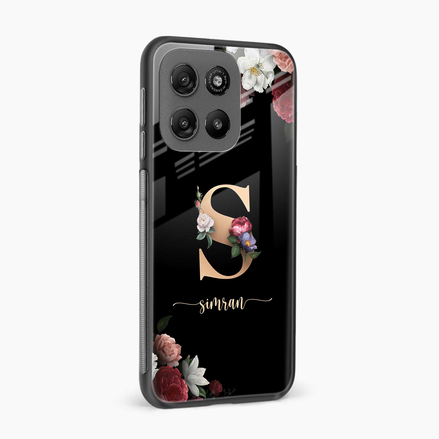 Black Floral Name Personalised Motorola G57 Power 5G Back Cover