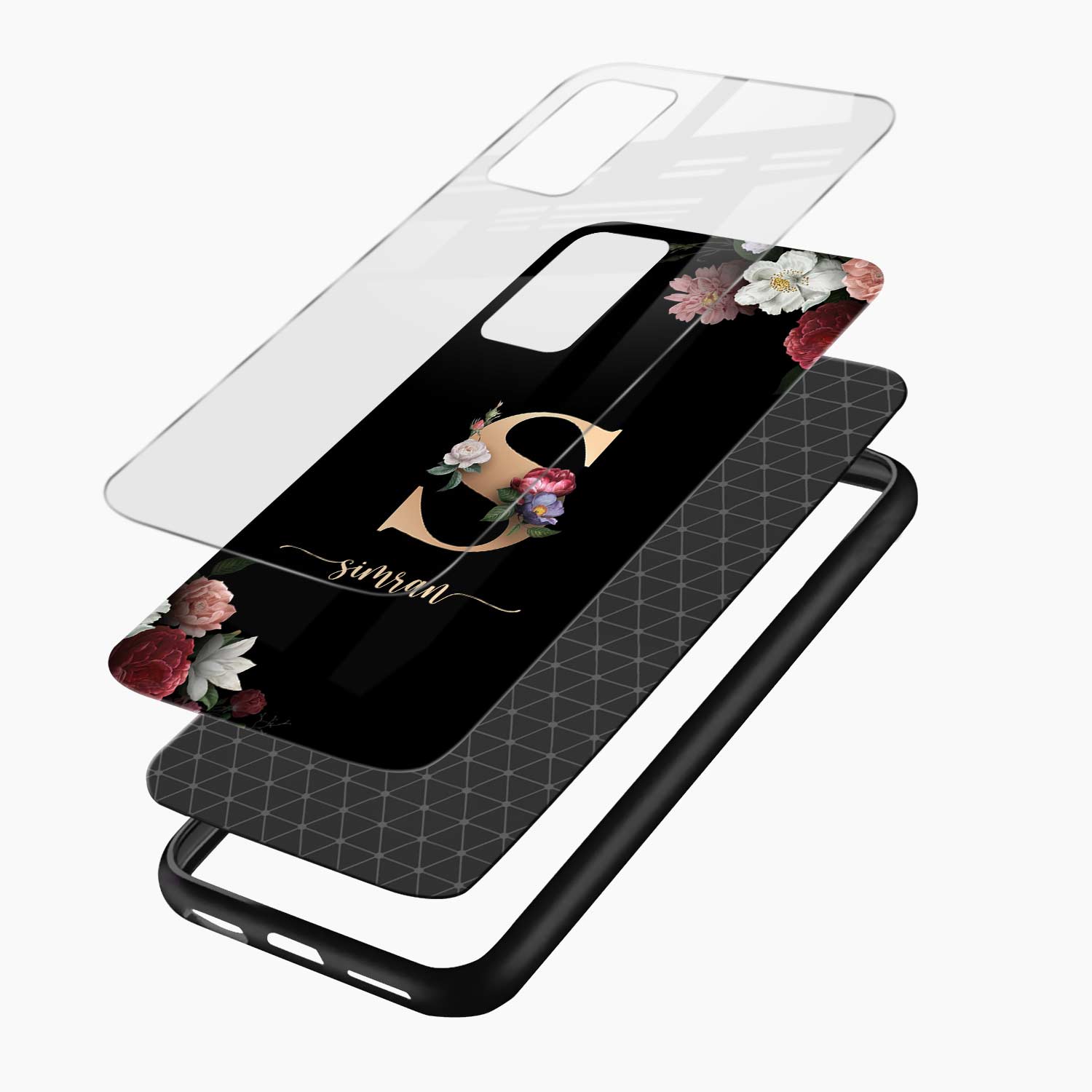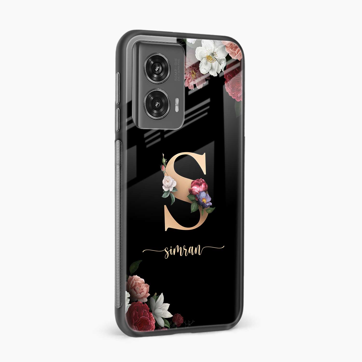 Black Floral Name Personalised Motorola G96 5G Back Cover