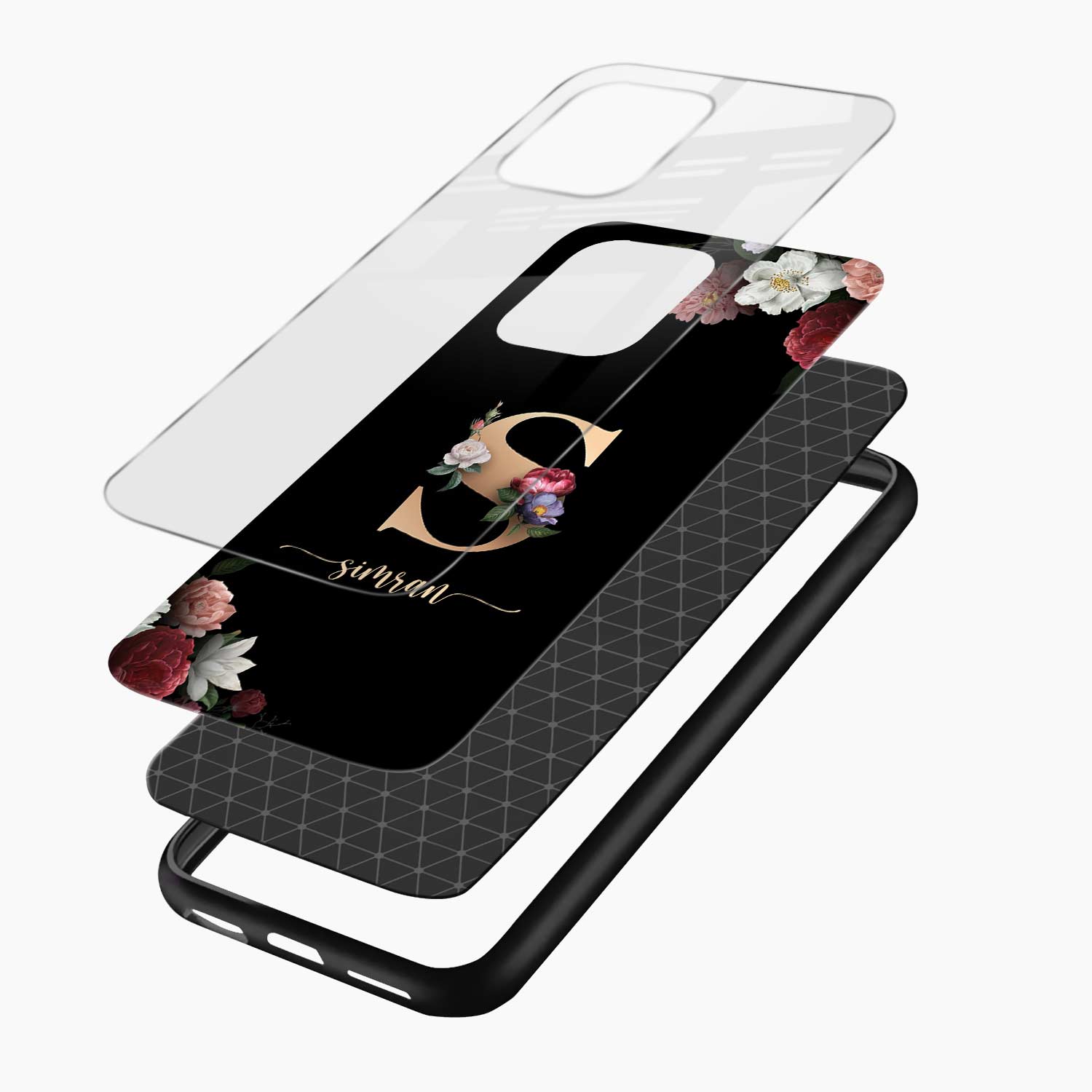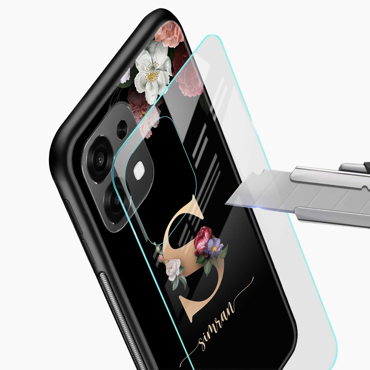 Black Floral Name Personalised Oppo F31 5G Back Cover