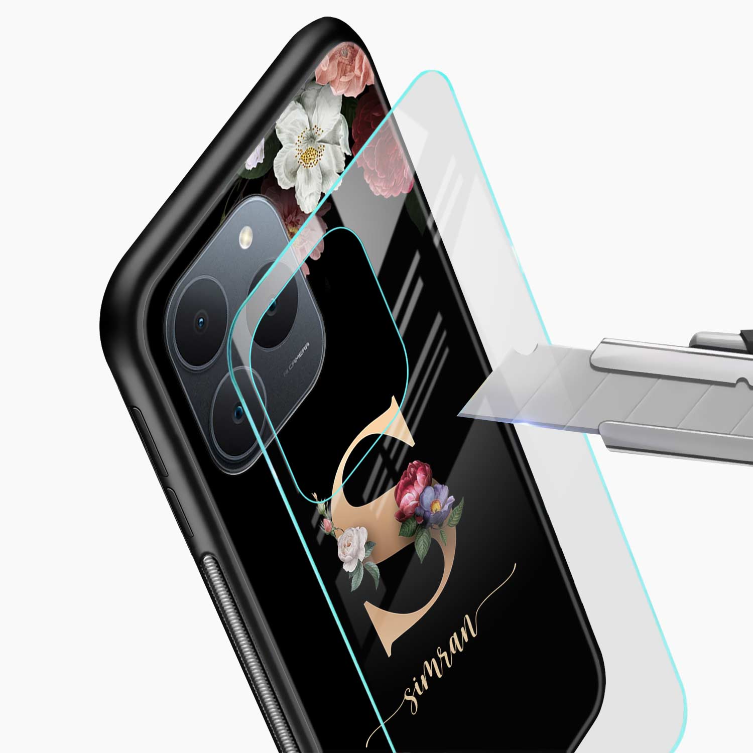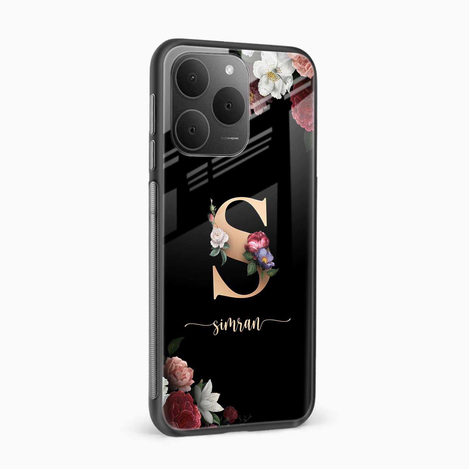 Black Floral Name Personalised Realme 15t 5G Back Cover