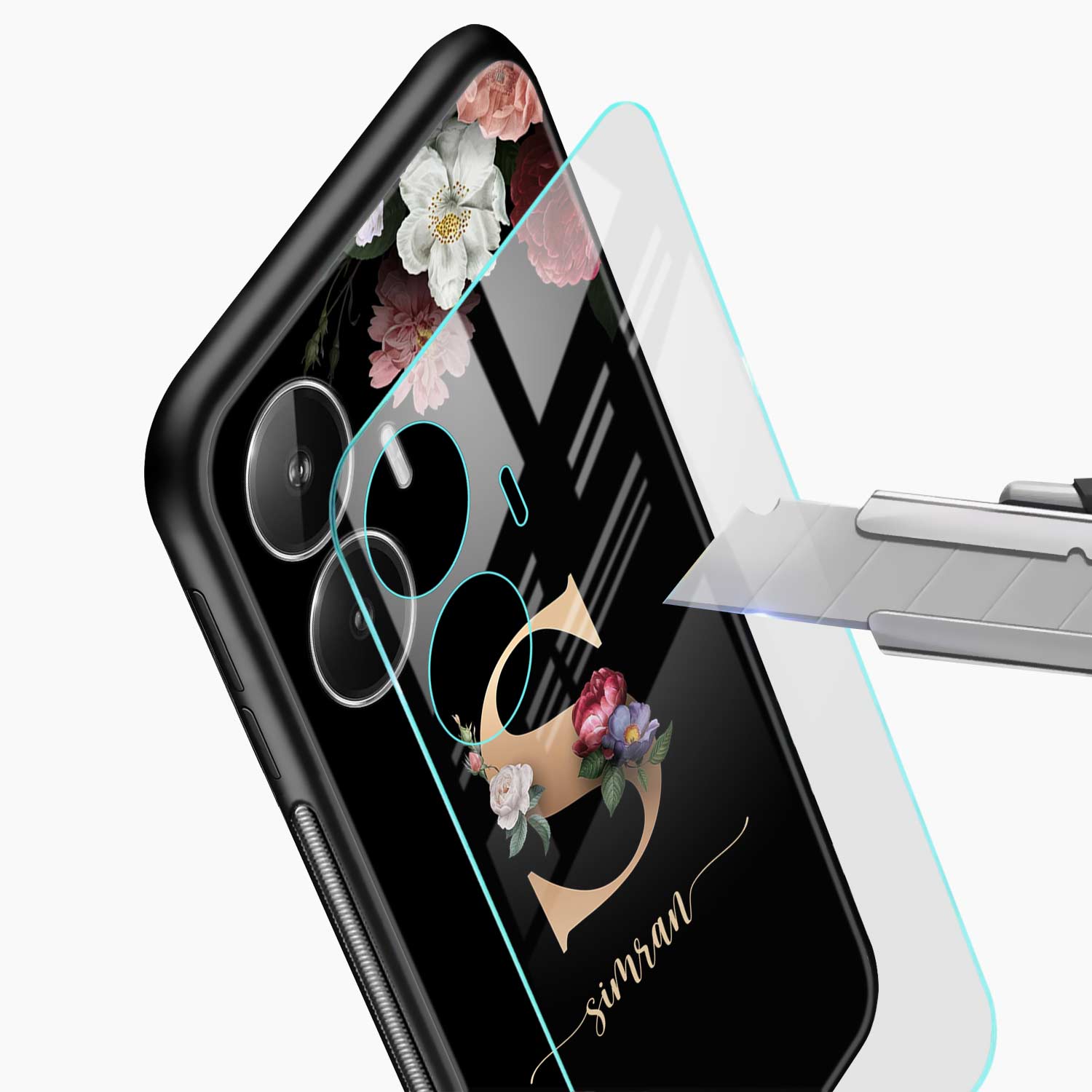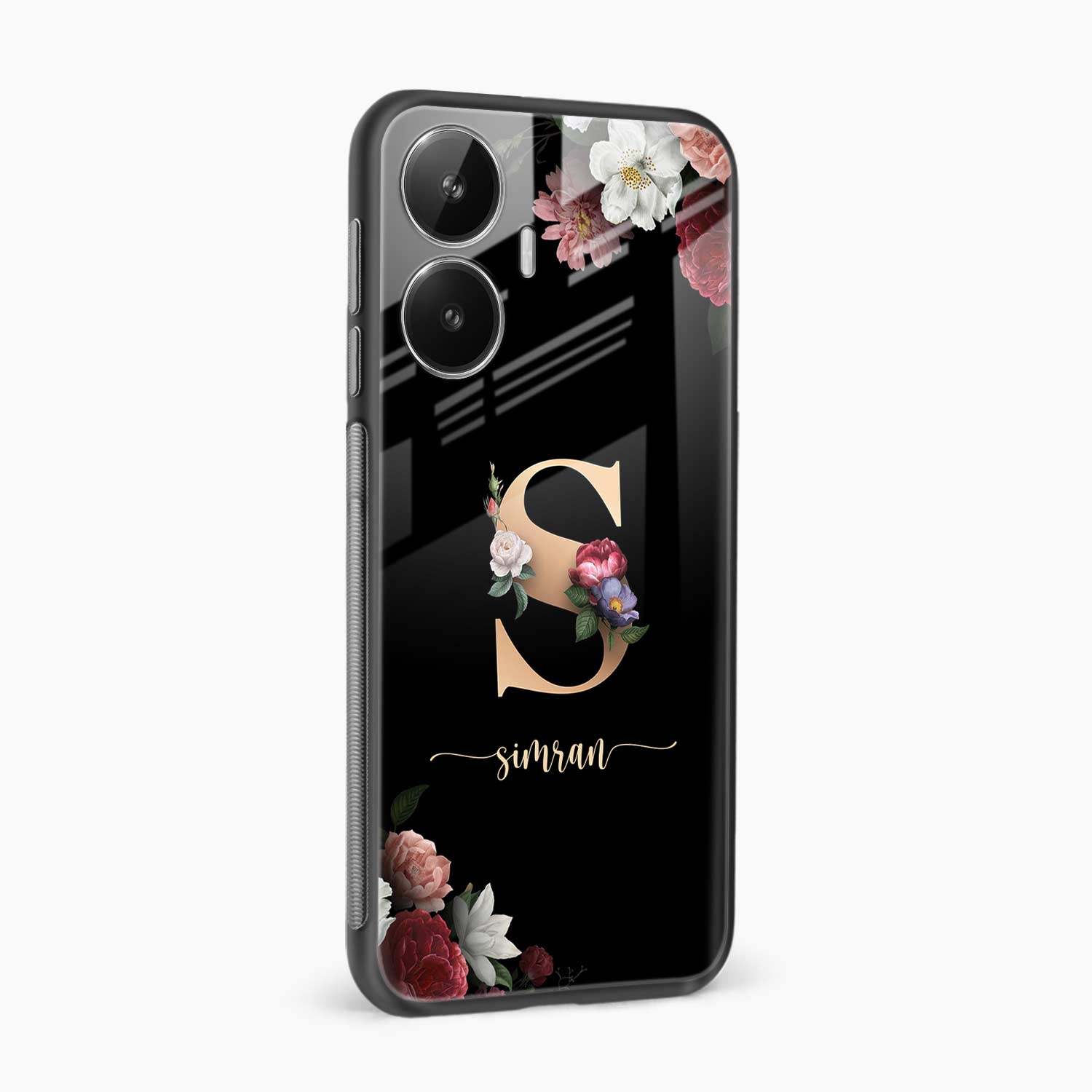 Black Floral Name Personalised Realme Narzo N55 Back Cover