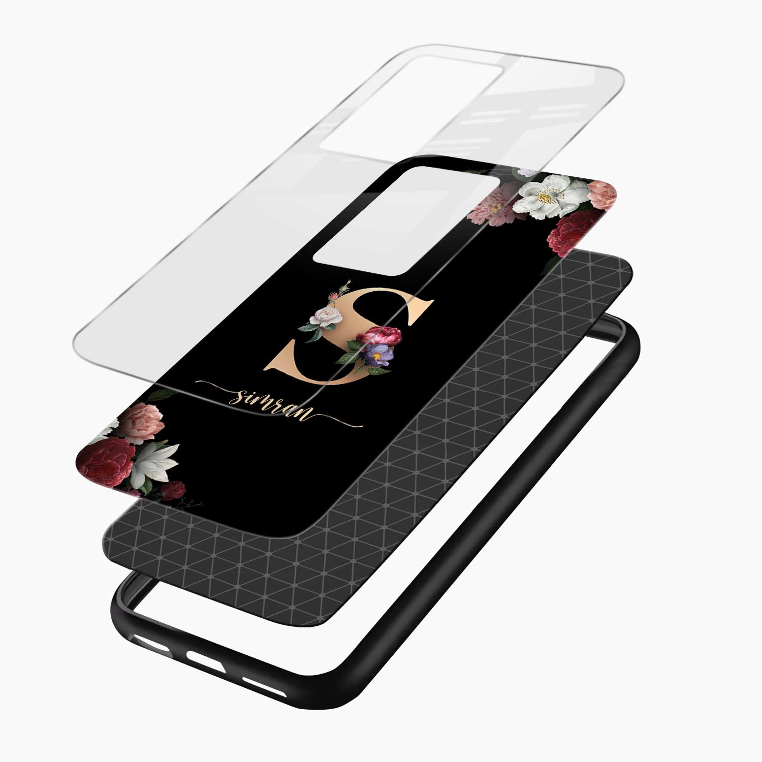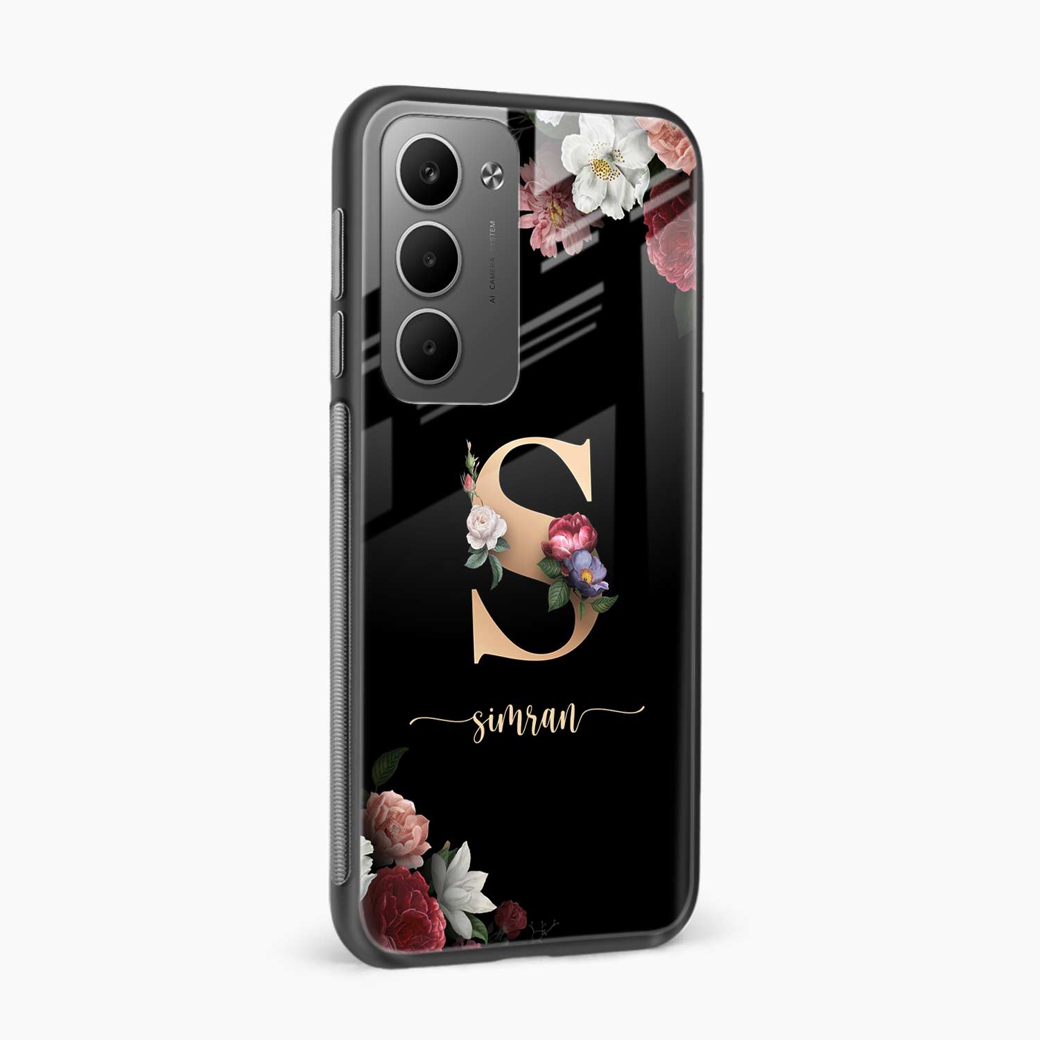 Black Floral Name Personalised Redmi 15 5G Back Cover