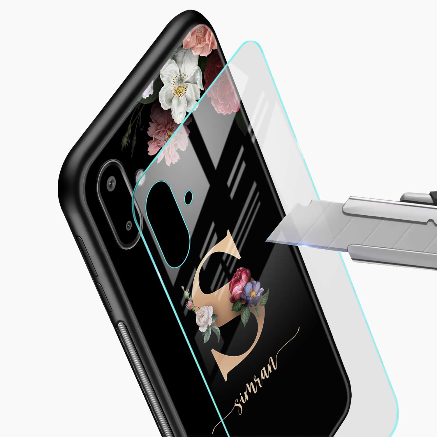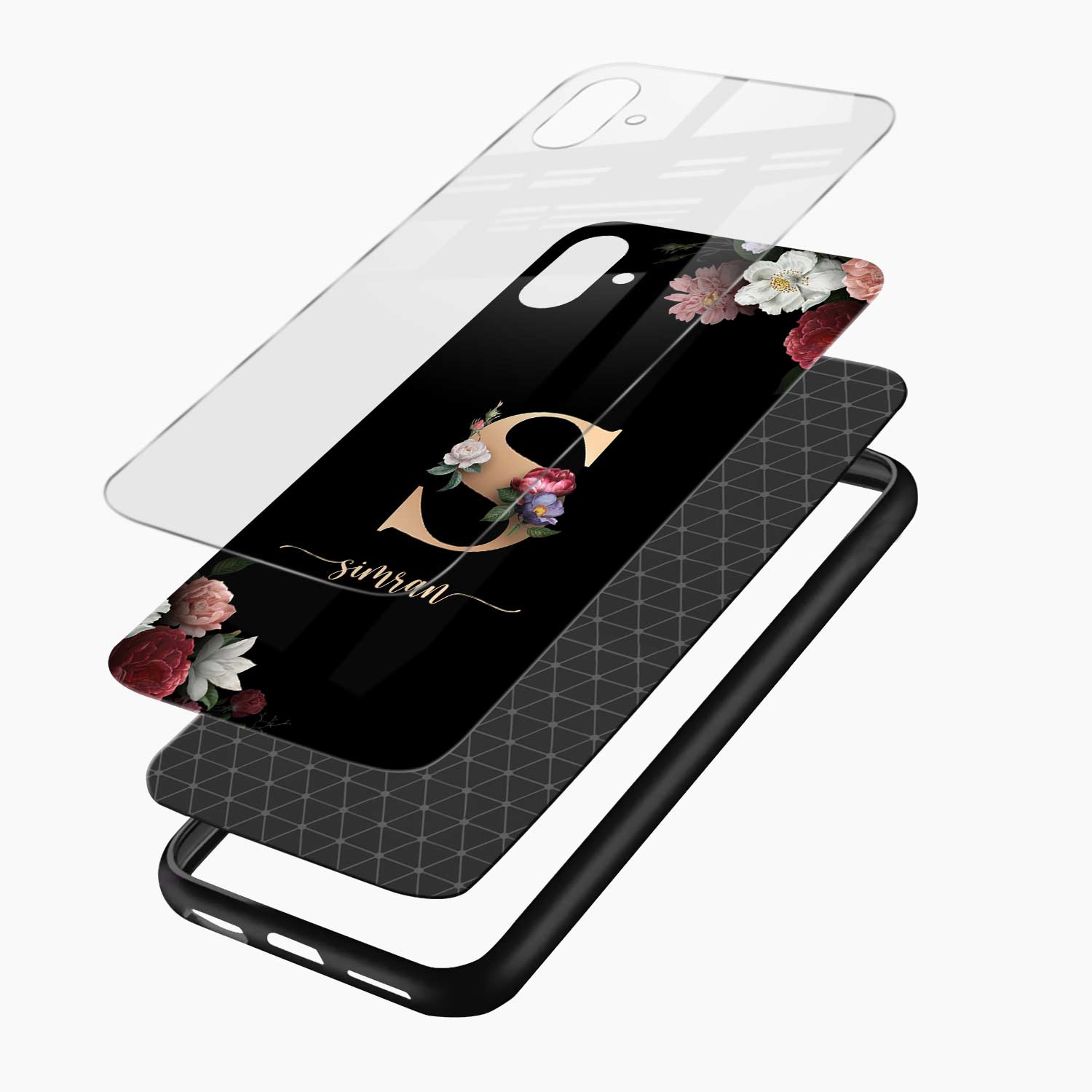 Black Floral Name Personalised Samsung F07 Back Cover