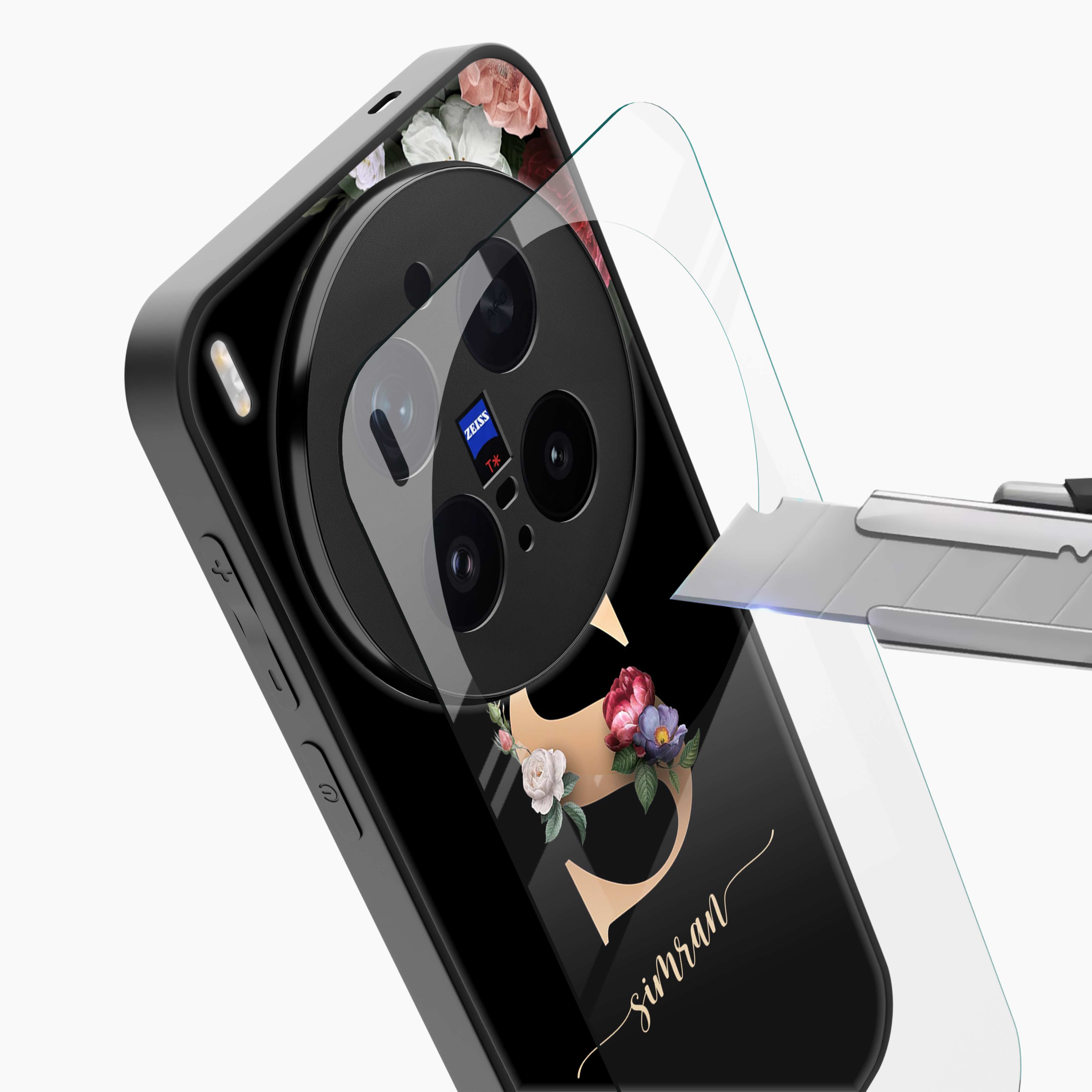 Black Floral Name Personalised Vivo X300 Pro 5G Back Cover