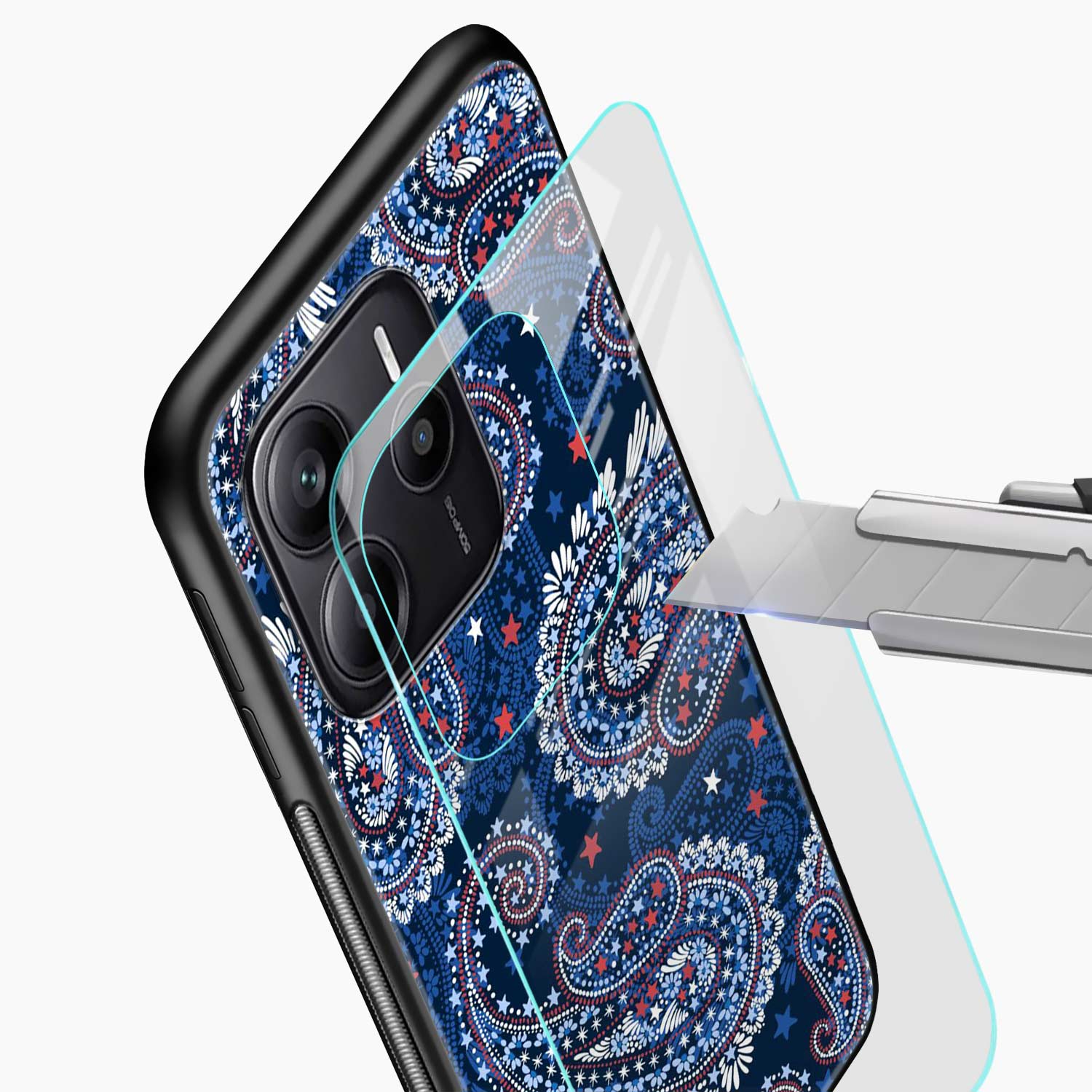Blue Colored Classical Pattern Redmi Note 14 SE 5G Back Cover