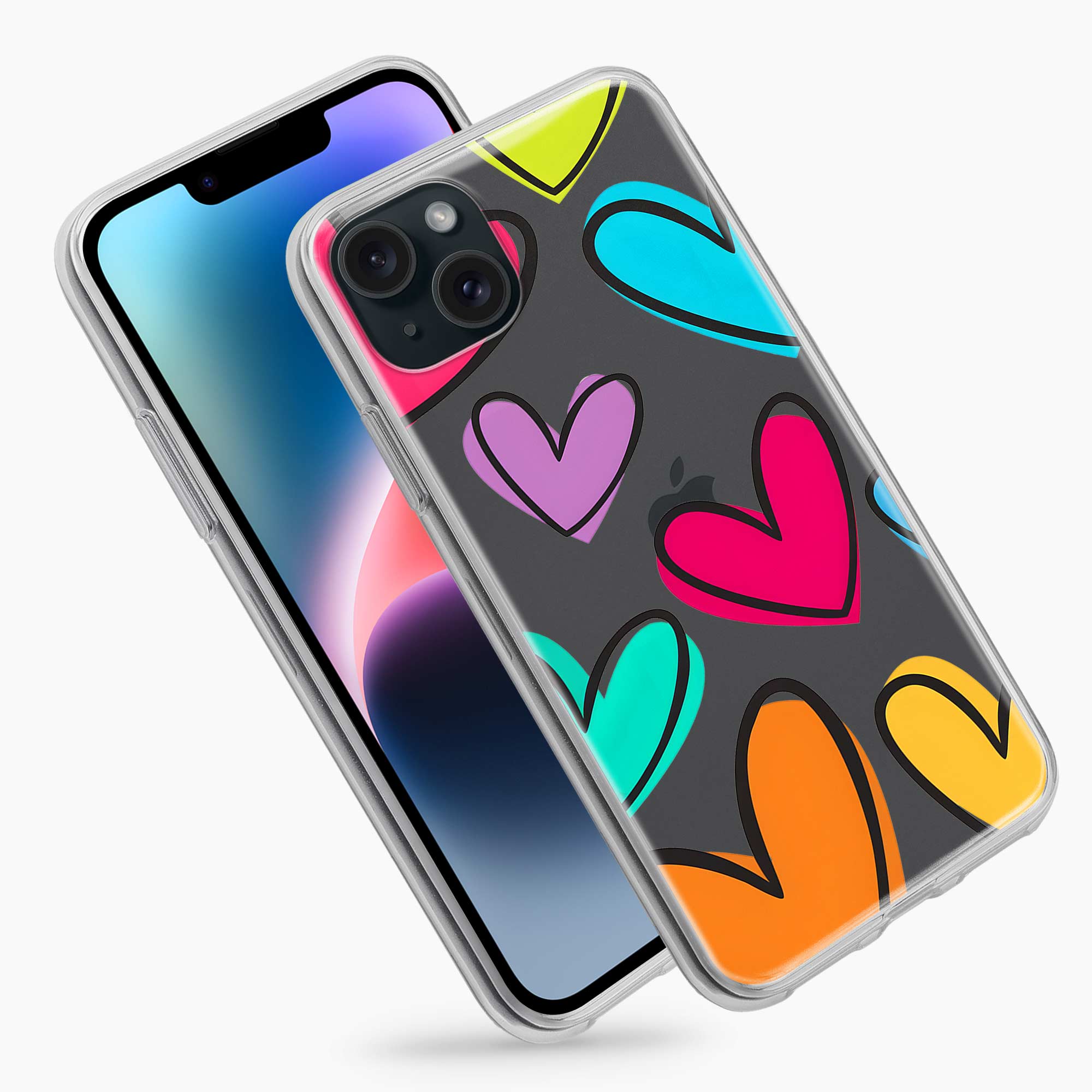 Multicolor Hearts iPhone 14 Plus Silicone Back Cover