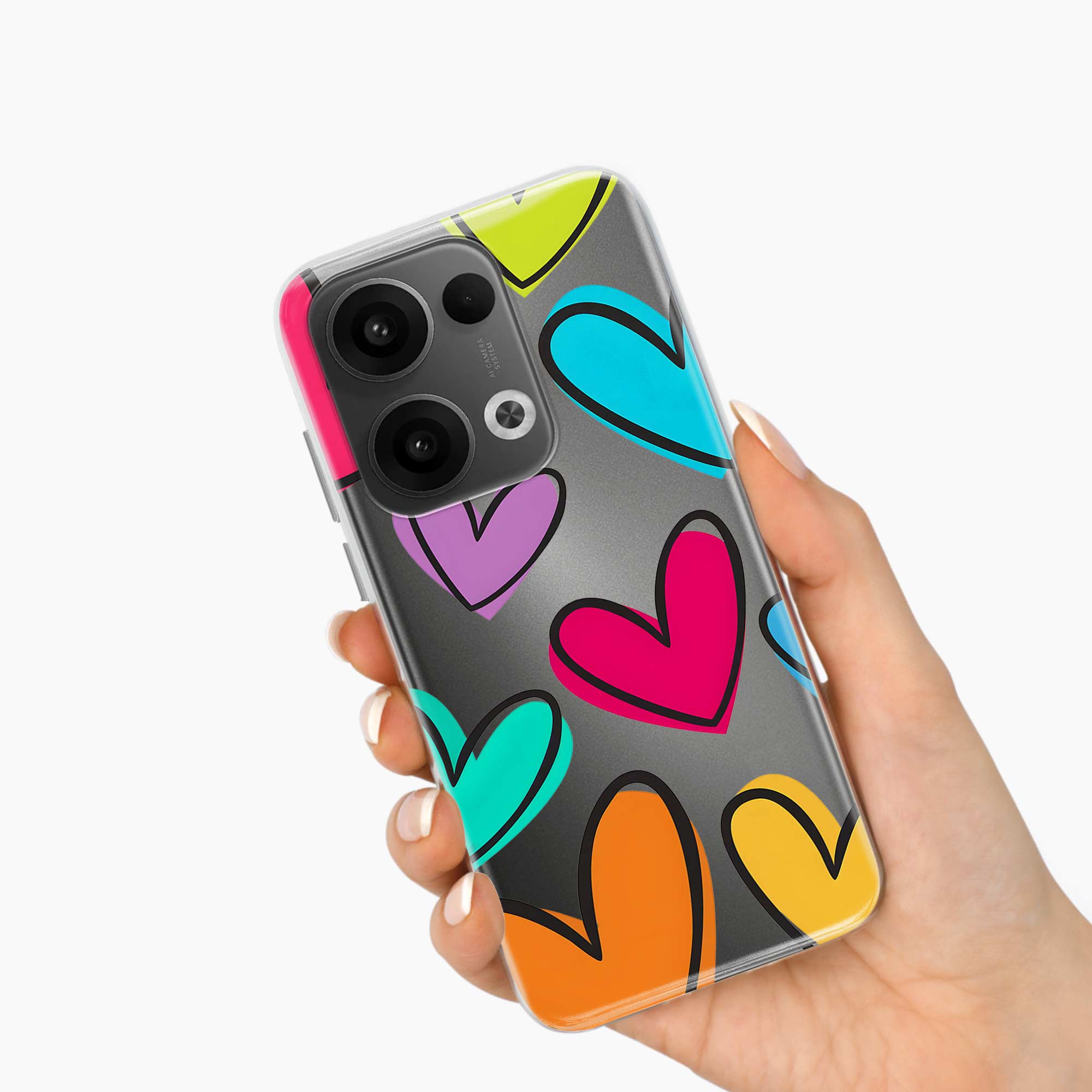 Multicolor Hearts Oppo Reno 13 5G Silicone Back Cover